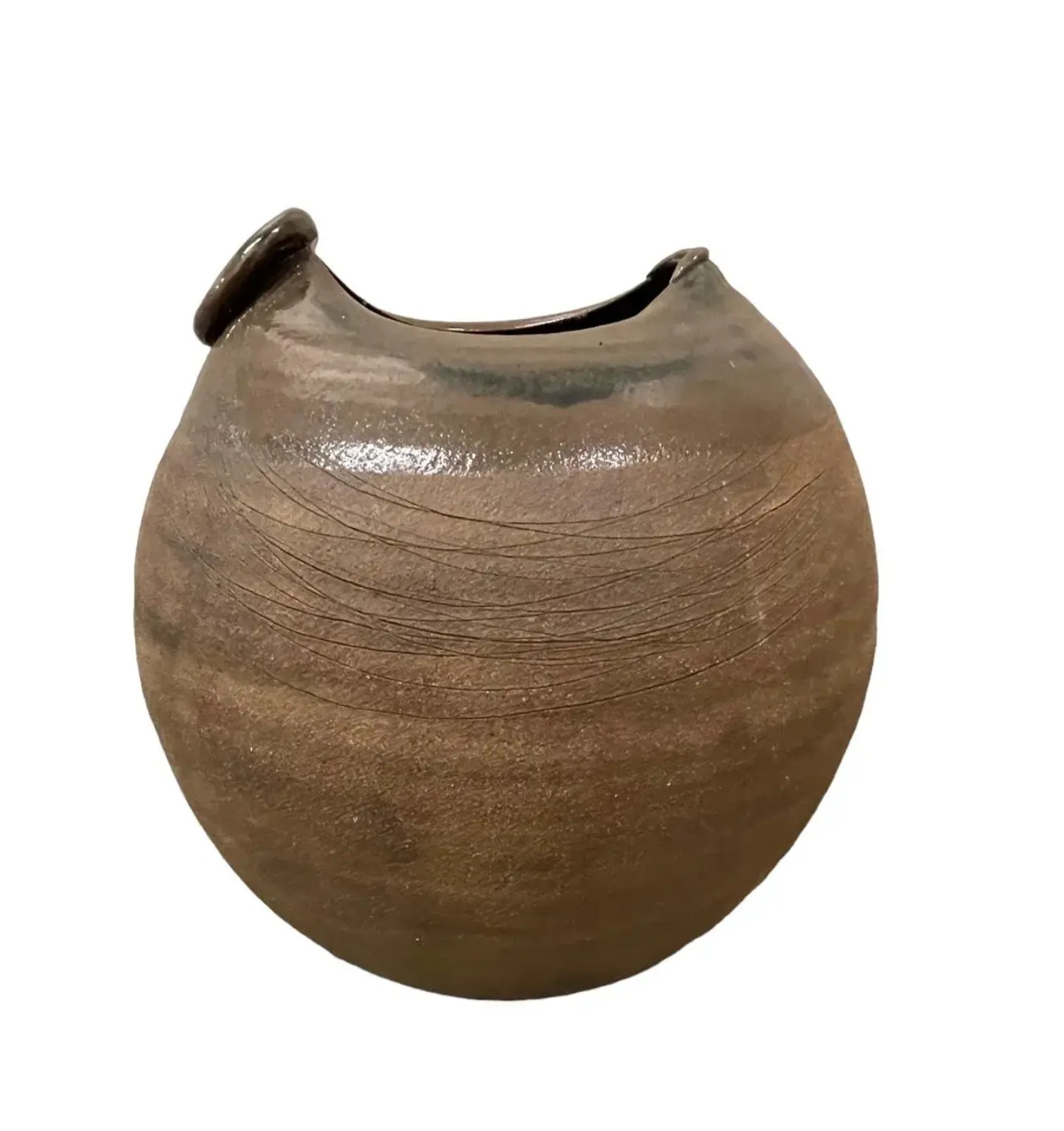 This handcrafted large ceramic vessel vase offers earthy elegance and sculptural presence. Artist signed and marked, it’s ideal for collectors or interior designers seeking one-of-a-kind pieces.